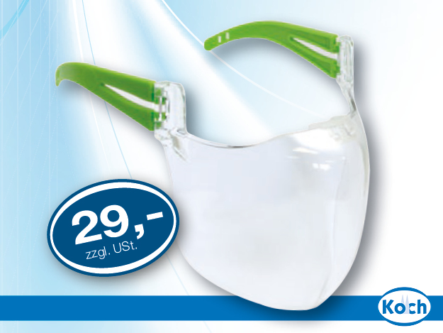 • patentierter, transparenter, vollständiger Schutz von Mund- und Nasenbereich als